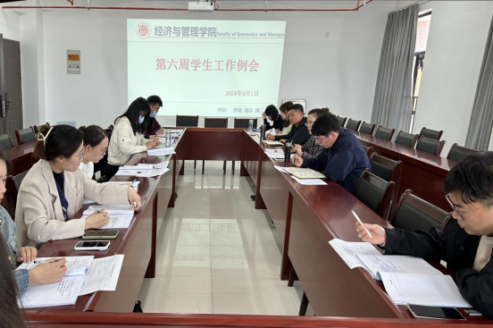 会上,首先各辅导员就上周日常管理工作和分管工作及接下来预计开展工作进行汇报。主要包括2024年度(上半年)团员发展工作、“先进班集体”典型事迹申报和评选,“第五期入党积极分子”选拔考察、三四月份第二课堂活动总结、方案撰写和修改、春季心理问题的排查和预防、、学生宿舍人际关系的构建、班级班风学风的强化、大学生挑战杯工作的督促指导、毕业班学生就业和第二课堂学分情况以及其他日常管理工作。