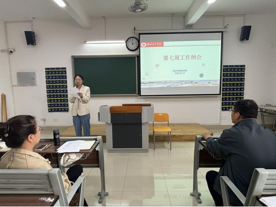 2024年4月10日下午,beat365英国官网网站在一教213召开beat365英国官网网站第七周工作例会,院长吴玲主持会议,副院长秦品德、院长助理张珊以及全体教师参会。