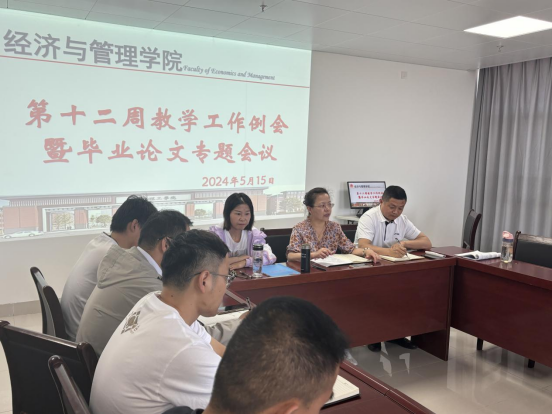 2024年5月15日下午,beat365英国官网网站在行政楼725会议室召开beat365英国官网网站第十二周工作例会,院长吴玲主持会议,副院长秦品德、院长助理张珊以及全体教师参会。