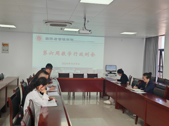 2024年10月9日,beat365英国官网网站在新行政楼725召开新学期第六周教学行政例会,会议由院长吴玲主持,院长助理张珊、实训中心主任及各教研室主任参加会议。