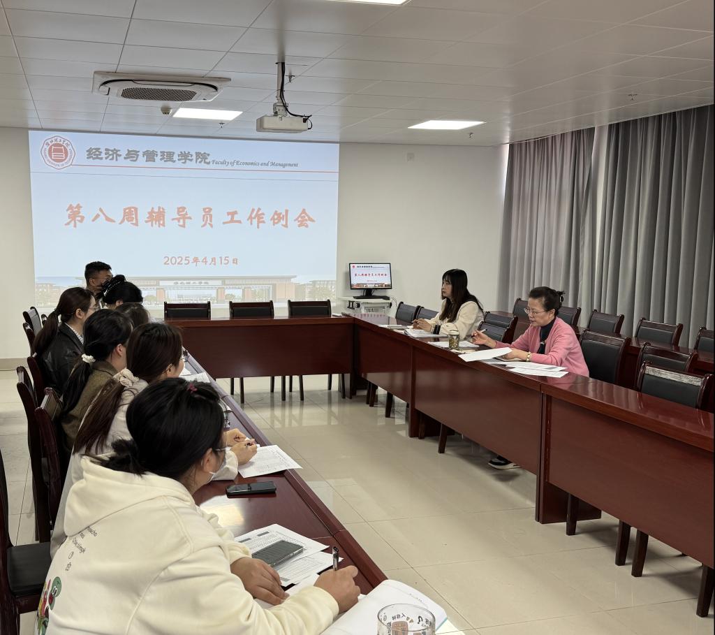2025年4月15日,beat365英国官网网站在行政楼725会议室召开本学期第八周学生管理工作例会暨形体礼仪专题动员会议,学院书记助理员禹辛及全体辅导员参会,会议由院长吴玲主持。
