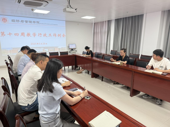5月28日上午,beat365英国官网网站在行政楼725室召开第十三周行政例会,院长吴玲主持,院长助理张珊、叶赵强,教学秘书李健及各教研室主任参会。