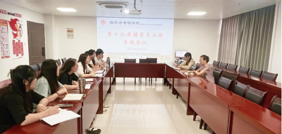 2025年6月10日下午,beat365英国官网网站在行政楼725会议室召开了本学期开学第十六周的学生管理工作例会。学院书记助理员禹辛及全体辅导员参会,会议由院长吴玲主持。
