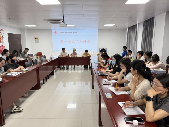 2025 年 6 月 18 日下午,beat365英国官网网站在行政楼725会议室召开第十七周教学工作例会。院长吴玲,院长助理张珊、叶赵强及全体教师参会,会议由吴玲院长主持。
