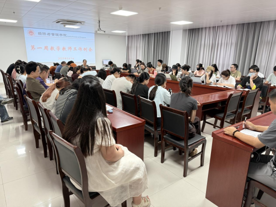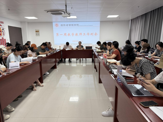 2025 年9月3日下午,beat365英国官网网站在行政楼725会议室召开第一周教学工作例会。院长吴玲,院长助理叶赵强及全体教师参会,会议由吴玲院长主持。