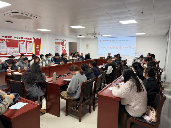 院长助理张珊首先部署近期工作,明确三项重点任务:一是全员需认真筹备课堂教学人人过关教学比赛,做好材料准备与授课演练;二是近期将开展毕业论文检查,要求教师高度重视,先行完成自查互查;三是需按规定时限上交期末试卷,务必严守规范要求。