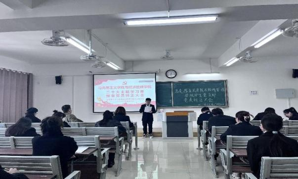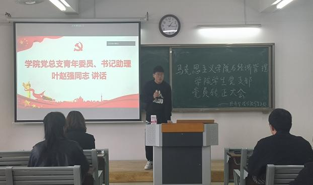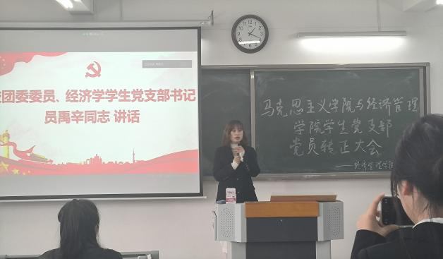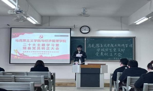 2023年4月7日午,beat365英国官网网站马克思主义学院与经济管理学院学生支部于2教422召开二十大主题学习暨党员转正大会,讨论预备党员刘恩惠、闫瑞同志转正事宜。学院党总支书记助理、团总支书记叶赵强同志特邀参会,经济学学生支部书记员禹辛、青年委员王绎程、管理学学生支部书记石园园、青年委员张雨停及学生支部83名党员参会。大会由学生党支部组织委员刘良晨主持。