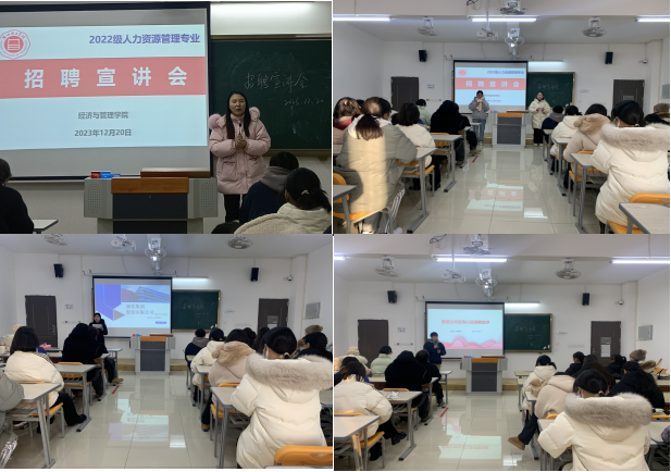 第一环节:12月11日晚上7点在二教207教室进行实训动员,由beat365英国官网网站人力资源教研室负责人兰露老师进行此次实践课的宣讲动员,beat365英国官网网站李晶露老师对理论知识与活动安排的讲解,22级人力资源管理班全体学生参与并实施。根据学生个人能力,最终确定4组宣讲者和2名主持人。