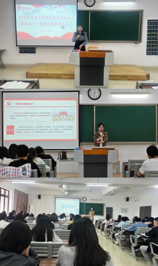 在党支部集中教学和学员个人主动学习的基础上,经济和管理学院党总支为进一步丰富学习形式和内容,组织学院全体学员开展4次主题研讨,如“结合习近平新时代中国特色社会主义思想及党的二十大精神,谈谈站在新时代新征程上,青年应该如何担当作为,争做新时代有为青年”和“重温党史守初心,如何从党史故事中锤炼党性践使命”等学习研讨交流,大家积极主动,踊跃发言畅谈学习体会,进行思想碰撞,进一步坚定党的信念和党的领导,模范履行好党员义务。