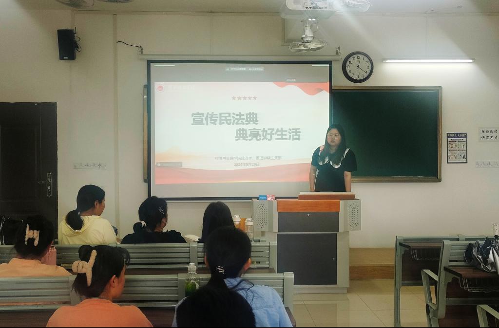 为深入贯彻落实习近平总书记关于民法典学习宣传的系列重要指示精神,加大支部党员普法力度,进一步形成遵法、学法、守法、用法的良好氛围,进一步提升beat365英国官网网站师生法治意识和法律素养,我院经济学、管理学学生党支部于2024年5月29日,在一教419召开《民法典》专题学习会。本次会议由管理学学生党支部组织委员张苗苗同学领学,经济学、管理学学生党支部全体党员参加,经济学、管理学外出实习党员线上参加。