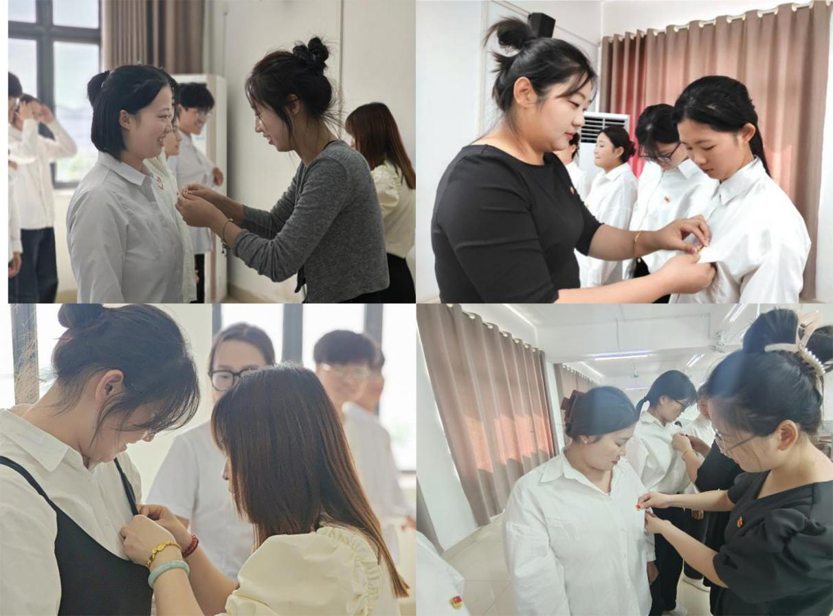 经过严格的讨论和投票程序,最终决定接收这十二位同学为中共预备党员。在激动人心的时刻,参会老师亲自为他们佩戴党徽,标志着他们正式成为党组织的一员。