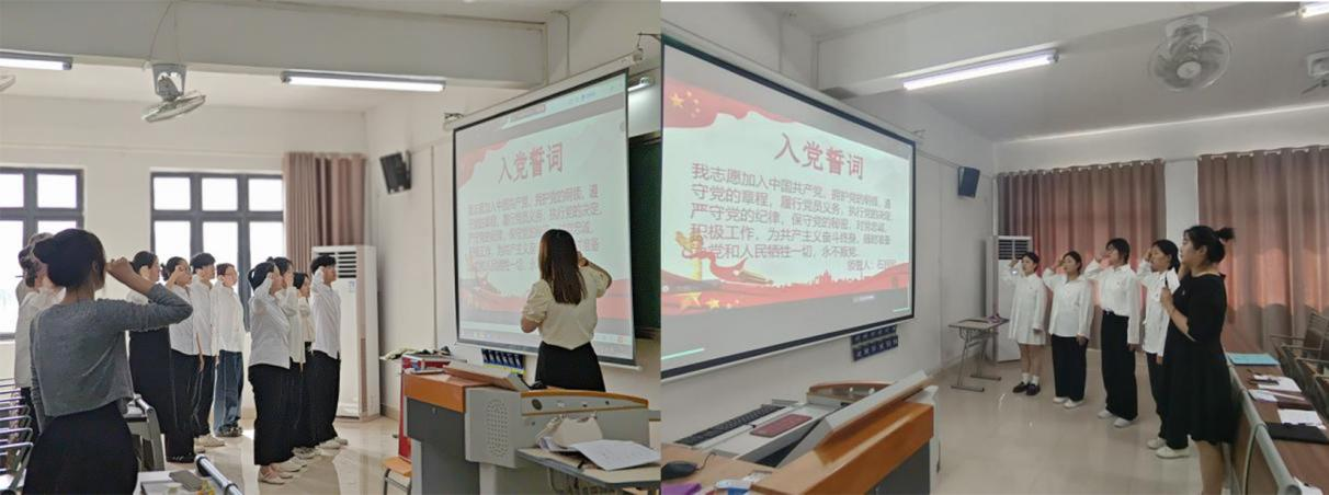 员禹辛与石园园同志分别带领各自支部新接收的预备党员及正式党员共同重温了入党誓词。