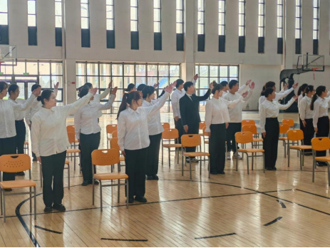 礼仪操表演环节,同学们身着整齐划一的服装,身姿挺拔,神情专注。他们以标准的站姿、优雅的坐姿、稳健的走姿及规范的手势,精准表达出商务礼仪的基本动作与仪态规范要求。每一个动作的伸展、每一次姿态的转换,都流畅自然,尽显专业风范。这背后是同学们无数次的精心排练,每一个细节都经过反复打磨,深刻诠释了他们对商务礼仪规范的深入领悟与高度尊重。礼仪操的展示旨在让学生通过反复练习和精准呈现,将商务礼仪规范内化为自身的行为习惯,从而在日常学习和生活中自然流露出优雅得体的气质,塑造良好的个人形象,同时提升自我约束和自我管理能力,为未来在商务场合中展现出专业、自信的形象奠定坚实基础,助力其在竞争激烈的职场环境中脱颖而出。