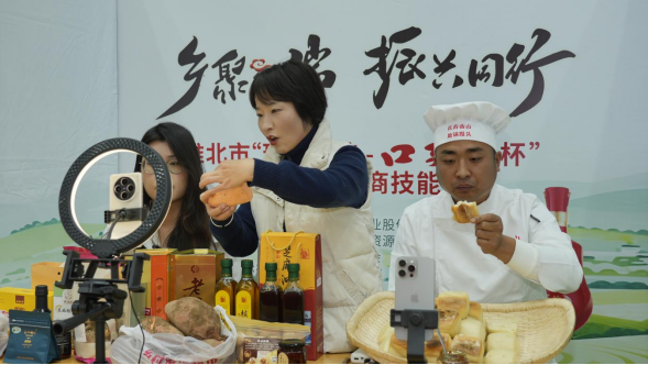 本次大赛中,南山村、大庄村、段庄村均派出由村党委负责人和年轻后备干部组成的参赛团队,积极备赛、精心筹划,全面展示了各村特色产业优势。南山村携带南山芝麻油、核桃油、纸皮核桃、红薯等优质农产品参赛;大庄村主推玫瑰香充气葡萄酒、玫瑰香葡萄汁等地方特色产品;段庄村推出“朔湖春”品牌东北稻香米、粳香米等优质粮品,直播中反响热烈,赢得了观众和评委的广泛好评。三个村队在比赛中同获三等奖,成为本届大赛乡村代表队中的亮点,展现了杜集区在电商赋能乡村振兴方面的扎实成效。