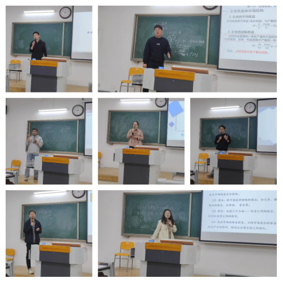 陈福顺、段新宇、胡月、叶赵强、宋晨泽、谢有为、刘杉7位西方经济学组的老师先后进行了“《西方经济学》同课异构”的展示。相同的教学内容,不同的教学构思,7位老师经过精心准备,结合学生实际情况,用个性化的教学方式展现了不同的教坛风采。