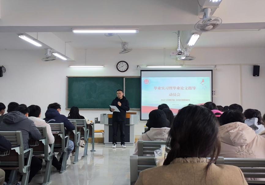 为进一步提升学生的就业竞争力,增加社会实践知识,保证2024届学生实习工作顺利开展,帮助学生了解实习安排,2023年11月15日下午,经济与管理学院市场营销专业在二教421室顺利召开了2024届毕业实习暨毕业论文指导动员会。经济与管理学院院长吴玲、市场营销教研室全体指导教师及2022级市场营销专升本学生参加会议,会议由教研室负责人刘路路主持。