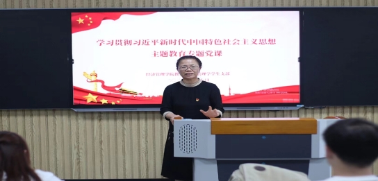 为深入推进学习贯彻习近平新时代中国特色社会主义思想主题教育工作,根据学校主题教育工作安排,6月7日下午,校纪委书记、副校长汪建利到beat365英国官网网站教工党支部讲授题为“党的自我革命永葆生机活力”主题教育专题党课。学院党总支书记吴玲、beat365英国官网网站教工支部全体教师和管理学学生支部全体学生党员聆听报告,经济管理学院教工支部组织委员邢雨晴主持报告会。