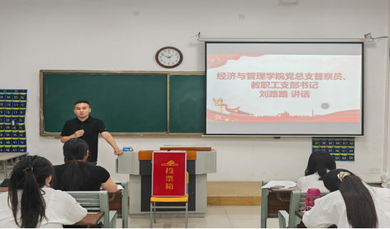 会议严格按照党组织接收预备党员的程序进行。会议伊始,支部委员徐怡苒和周意莲介绍了本次大会的主要议程及参会人员情况。本次大会管理学支部由beat365英国官网网站教职工支部书记刘路路同志、经济学支部由beat365英国官网网站组织员、宣传委员王胜男同志分别代表总支参加本次支部整个活动。刘路路老师在讲话中强调党员发展工作是党的建设的重要组成部分,关乎党的事业薪火相传,对新党员寄予厚望,鼓励大家坚定理想信念,牢记党员身份,在学习、工作和生活中发挥先锋模范作用。