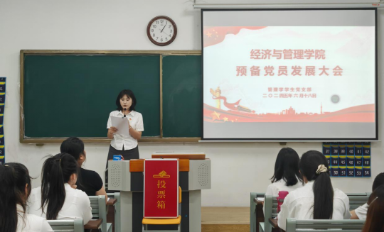 出席会议的人员有经济学学生支部书记员禹辛,管理学学生支部书记石园园,支部青年委员王绎程、两个支部全体学生党员以及本批22位发展对象。会议主要议题是讨论吸收洪可儿、赵凯丽等22名同志为中共预备党员的事宜。