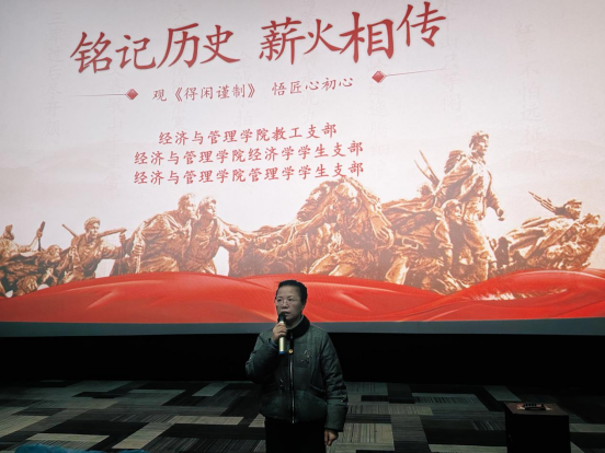 紧接着,学院党总支书记吴玲进行总结发言。她强调,历史是最好的教科书,也是最好的清醒剂。《得闲谨制》这部影片聚焦民族苦难与抗争历程,深刻展现了中华民族在危难时刻的坚韧不屈与家国情怀。她希望全体师生党员通过本次观影,能够深刻铭记历史创伤,从中汲取奋进力量,进一步强化责任担当,将爱国情、强国志、报国行自觉融入学习和工作实际,发挥好党员的先锋模范作用。