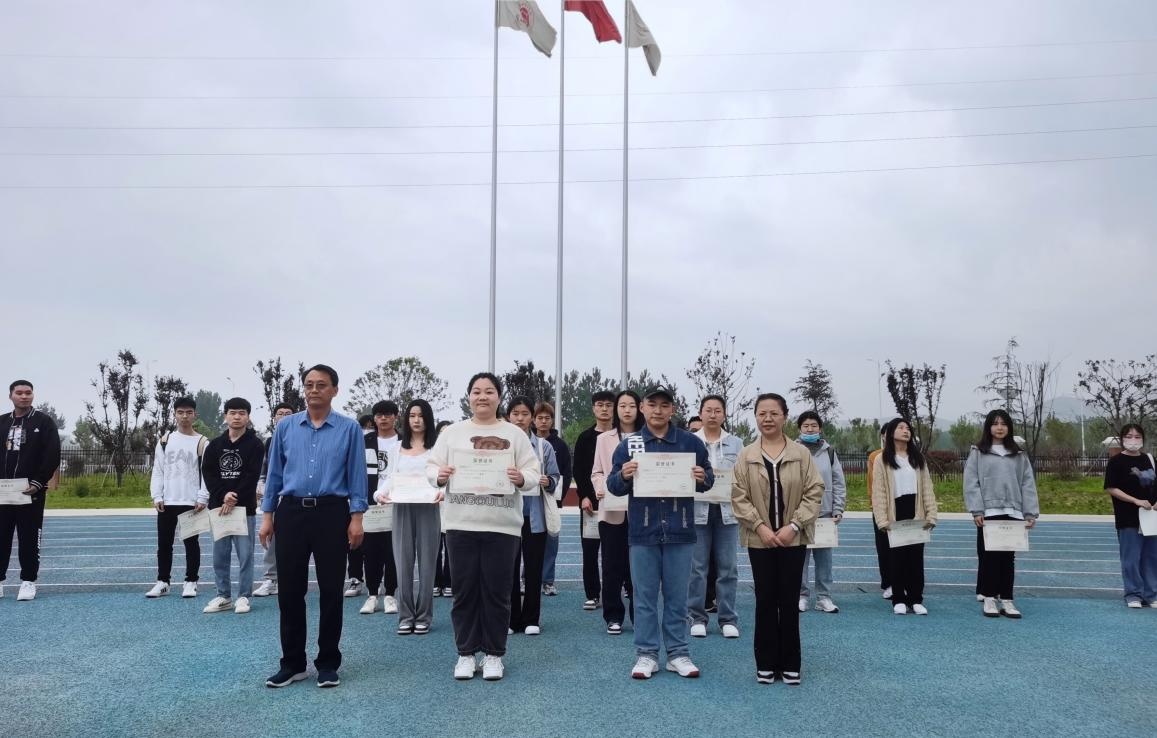 4月25日在庄严的升国旗仪式后,征文比赛的颁奖仪式也隆重进行,学生处处长孙增响,beat365英国官网网站院长吴玲,教工党支部书记陈志操、刘路路,学团负责人叶赵强、教学秘书张珊以及辅导员分别为获奖学生颁奖祝贺。