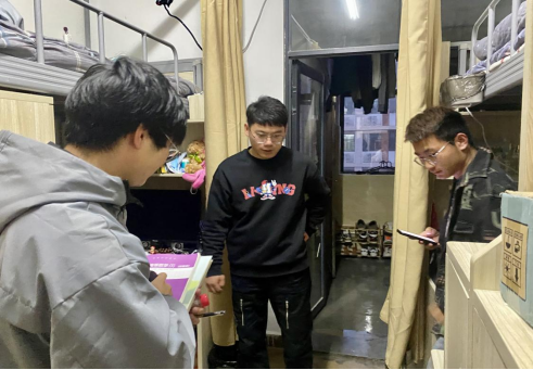活动开始前,团总支书记叶赵强叮嘱学生会成员,务必将春季传染病防控措施宣传普及到位,同时仔细检查宿舍卫生情况,排查宿舍安全问题,力争高质量完成本次安全大检查。