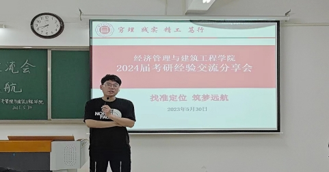 随着2023届全国研究生招生考试落下帷幕,2024届考研紧随其后,为传承我院首届毕业生考研文化精神,激发学生考研的热情,加强学生对考研的认识和了解,明确考研规划,挖掘自身潜能,树立考研必胜的自信,营造浓厚考研氛围,学院特邀2023年考研成功上岸的四位学生为学院各专业学生做考研经验交流分享。5月30日晚在2教323教室召开了经济管理与建筑工程学院首届考研经验分享交流会,学院书记助理叶赵强,考研成功上岸学生21级物流管理专业李晴、经济学专业黄顺、人力资源管理专业张梦茹、电子商务专业裘功浩,以及学院大一、大二和大三有考研意向学生参加此次会议,会议由22级辅导员张雨停主持。