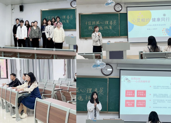首先由主持人宣讲比赛规则,其次每位选手宣讲时结合制作的PPT从个人简介、岗位认知、工作简述、工作计划等方面完成风采展示后,几位评委老师会根据选手的表现情况进行综合打分。每位选手展示时间为5分钟,每位选手有的以成长轨迹为起点,有的以结合个人经历论述心理健康的重要性,以情感人,以理服人。宣讲比赛所讲内容贴近学生、贴近实际、贴近生活,角度新颖,观点多元,视野开阔。比赛现场气氛活跃,参赛选手们的精采表现,不时响起阵阵掌声。最终我院推选出前三名,分别是宋雪平、池欣怡、杨徽三位同学为本次“十佳心理委员”院级前三名。