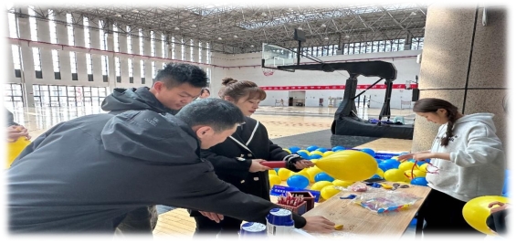 赛前,该活动总负责人员禹辛老师与该活动的组织策划人员及志愿者们一起检查活动所需道具并一起吹气球为活动做好准备。比赛人员逐渐到场,各个项目的负责人组织参赛选手进行签到与整队。
