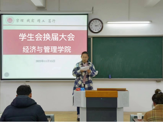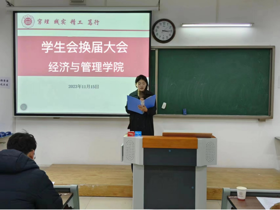 吴玲院长在讲话中对学生会换届的成功举办和新加入的学生会成员表示祝贺,同时对往届学生会的出色工作表示高度赞扬,并对新一届的学生会成员做出了殷切的期望。希望同学们严格要求自己,努力提高自身素质;要树立服务意识,加强团队沟通,创新性开展学生工作;要不断提升学生工作的素养,为打造一流的学生会而努力。学生会成员的称号既是一种荣誉更有一份责任,要保持奋斗精神和创新工作的理念,不断提升为经管学子服务能力和团队的整体水平,为学院的特色发展作出新的更大贡献。