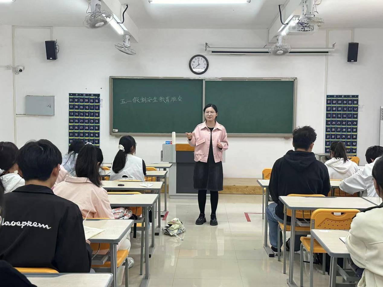 班会进行过程中,各辅导员首先介绍了劳动节假期的由来,并提醒同学们在享受假期的同时,要时刻关注自己的安全。随后,针对假期期间可能存在的安全隐患,辅导员提出以下几个需要注意的方面:一是出行安全,同学们在离校返校,外出旅行时要密切关注交通安全,遵守交通规则;要注意人身财产安全,注意避免落入诈骗陷阱。二是居家安全,假期同学们居家时间较长,要确保家中电器,煤气等设施安全。三是注意防传染病安全,当前仍存在甲流等春季传染病,在假期间要做好自身的防护。接下来辅导员向大家讲述了近年来发生在假期期间的一些安全事故,如溺水、触电、交通事故等,警示同学们要高度重视假期安全。班主任呼吁全体同学在假期期间严格遵守安全规定,做好个人防护,度过一个平安、愉快的假期。