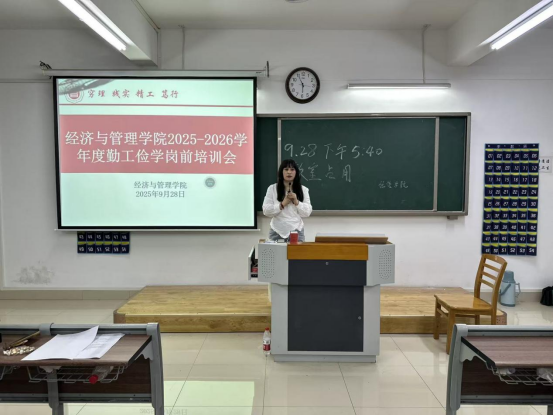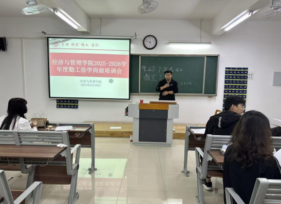 为规范勤工助学岗位管理,帮助学生更好地适应工作角色,beat365英国官网网站于9月28日在二教422召开2025-2026学年勤工助学岗前培训会,学院书记助理员禹辛、实验室主任、教学秘书李健、负责勤工助学工作的老师以及66名已录用学生共同参加,会议由院学生会文体部部长汪朱仝主持。