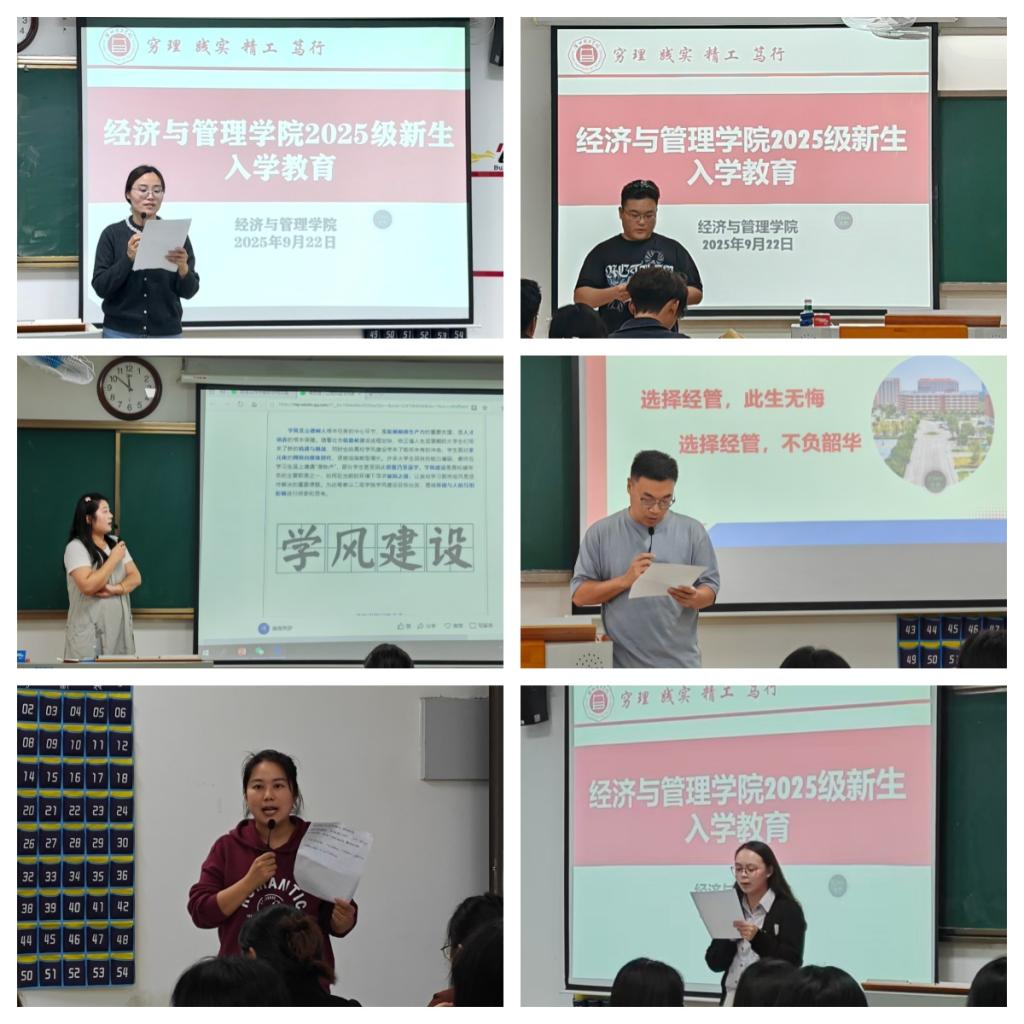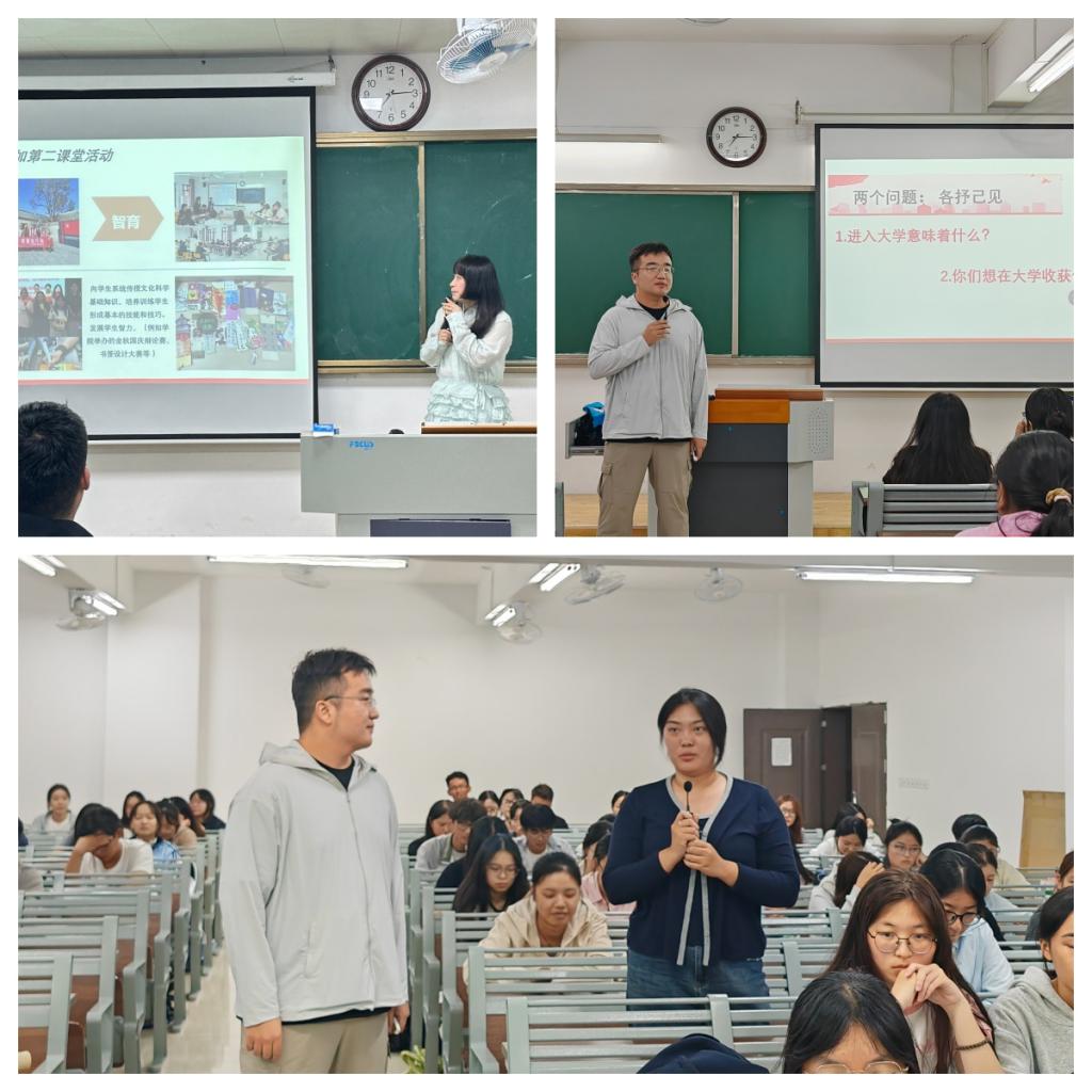 书记助理员禹辛和团总支书记王绎程围绕学生成长概况、成长认知、成长标准与成长路径等方面展开分享。他们结合多年教育经验,鼓励新生在认真学习专业知识的同时,积极参与A类、B类学科竞赛以及各类社团组织和志愿服务活动。通过竞赛锤炼创新思维和专业实践能力,在社团与服务中提升团队协作精神与社会责任感,同时注重发展个人兴趣与特长,努力成为德智体美劳全面发展的新时代青年。