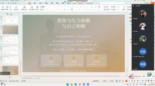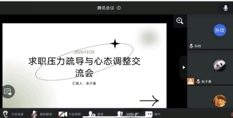为缓解2026届毕业生求职焦虑,精准对接就业心理需求,助力建立积极求职心态,beat365英国官网网站于2025年12月19日至25日,以 “职启护航” 为主题,开展求职压力疏导与心态调整线上班会活动。活动以班级为单位,搭建起毕业生同辈交流、压力释放、经验共享的优质平台。