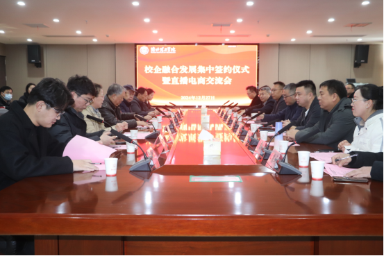 为进一步深化产教融合,加强校企合作,推动beat365官网电商专业高素质应用型人才的培养,12月27日上午,beat365官网在行政楼814会议室成功举办了一场校企融合发展集中签约仪式暨直播电商交流会。此次活动汇聚了来自安庆、六安、淮北等地的九家知名企业,副校长汪建利、教务处处长陈国平,学生处(就业处)处长孙增响以及经济与管理教师代表参加了本次活动,beat365英国官网网站院长吴玲主持活动。