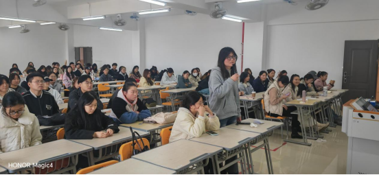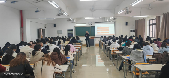杨丙法总经理通过“破冰”“讲授内容及测试”“留白互动”三个环节,从重要性、职业生涯、素养模型三个方面进行主题讲座。通过比较“人”与“资本”两生产要素在组织部门与财政部门的应用事例,提出人本管理重要性;采用人力资源管理“T”字结构,阐述人本管理的机制、人力资本六大原理、五大职能、三大基石、两种技术等知识,以丰富内容串联带动同学们打开人力资源管理专业认知新视窗;构建素质模型,结合冰山理论激发同学们探究职业生涯规划设计、寻觅职业发展通道内驱力,通过高动机驱动价值赋能学生成长成才。